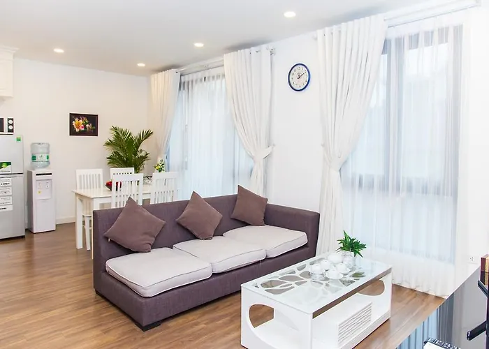 アパートはベトナム国立コンベンションセンターから3.4kmの距離で、西湖から3.3kmの距離で、Lake Thu Leすぐ近くです。 ハノイ市の中心部までは徒歩で30分かかります。 都市の景色を見渡すTai Tam - Grand Spring Suitesは、ロッテ展望台から徒歩でたった7分の場所に位置しています。
